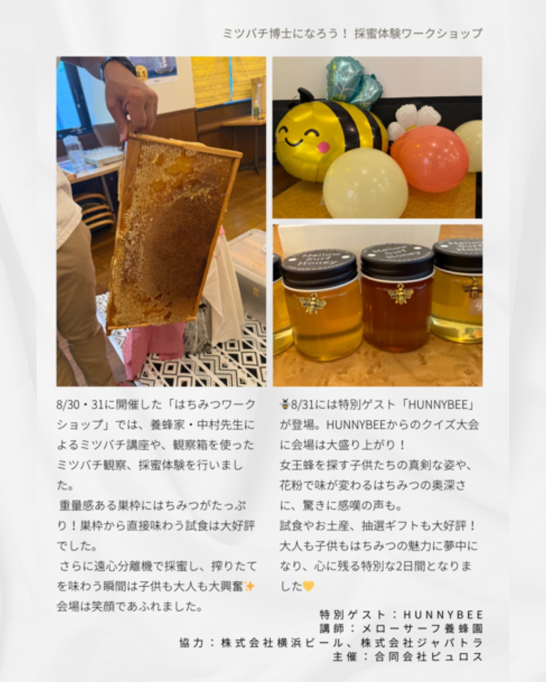 2025/8/30(土),31(日)ミツバチ博士になろう! 採蜜体験ワークショップ